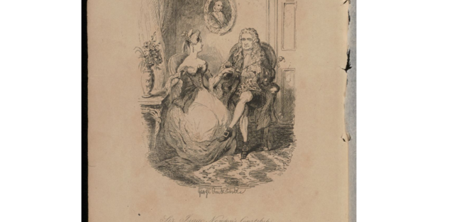 Noviazgo de Isaac Newton. Ilustración de George Cruickshank.